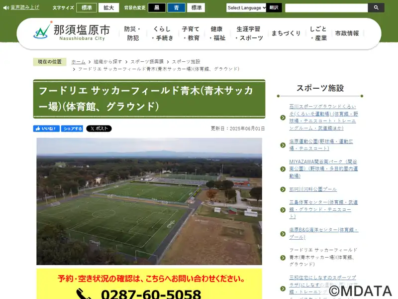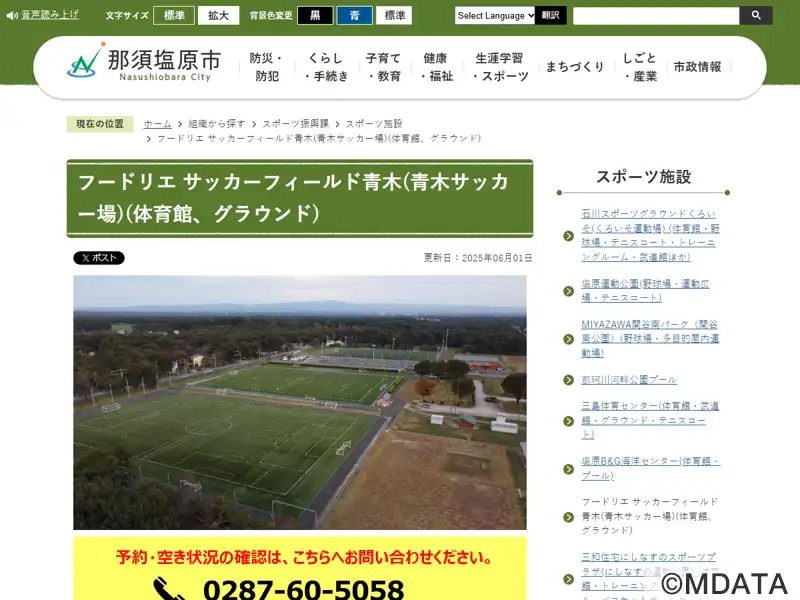 栃木県那須塩原市に位置する、サッカーを中心とした幅広いスポーツ活動に利用される総合スポーツ拠点。120m×約83mの人工芝グラウンドを3面(A・B・C)備え、CグラウンドにはLED照明も設置されている。更衣室やシャワー室なども整い、地域大会や合宿、学校部活動のほか、障害者スポーツや高齢者の運動利用など多様なニーズに対応。敷地内にはフットサルやバトミントン、バレーボールに利用できる体育館を併設する。