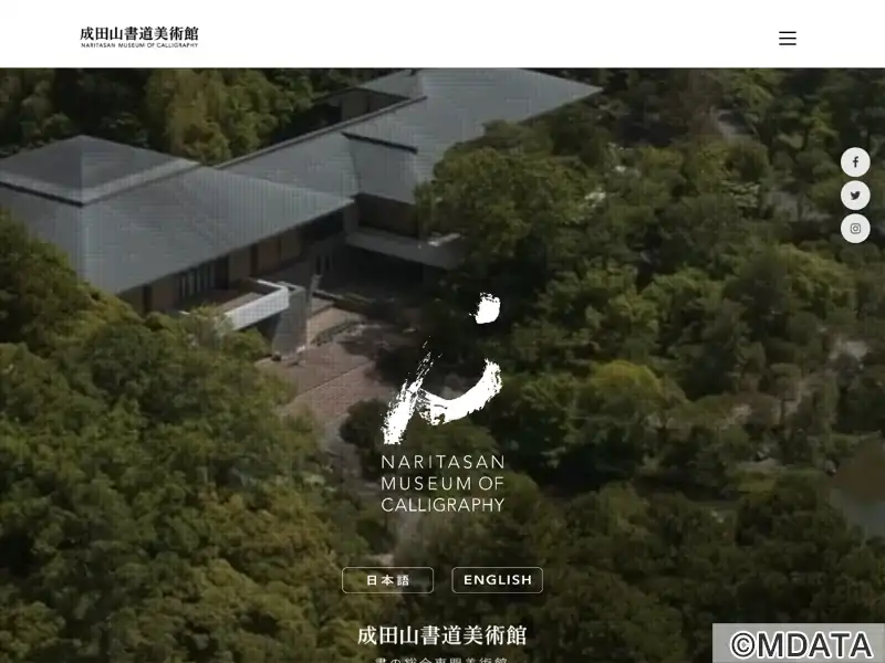 千葉県成田市の成田山公園内に1992年に開館した書道専門の美術館。江戸時代から現代の書作品を中心に、古筆・古写経、中国の拓本類、偉人の書跡など6,700点を超えるコレクションを収蔵。一般から専門家まで幅広い層に鑑賞の機会を提供し、優品を常時公開している。展示は、吹き抜けの中央ホールを持つ企画展示室と、2階に回廊式のギャラリーがあり、特別展示室や休憩室からは四季に彩られた庭園の景色を楽しめる。