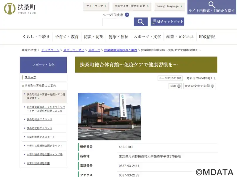 | 名称 | 扶桑町総合体育館~免疫ケアで健康習慣を~ |