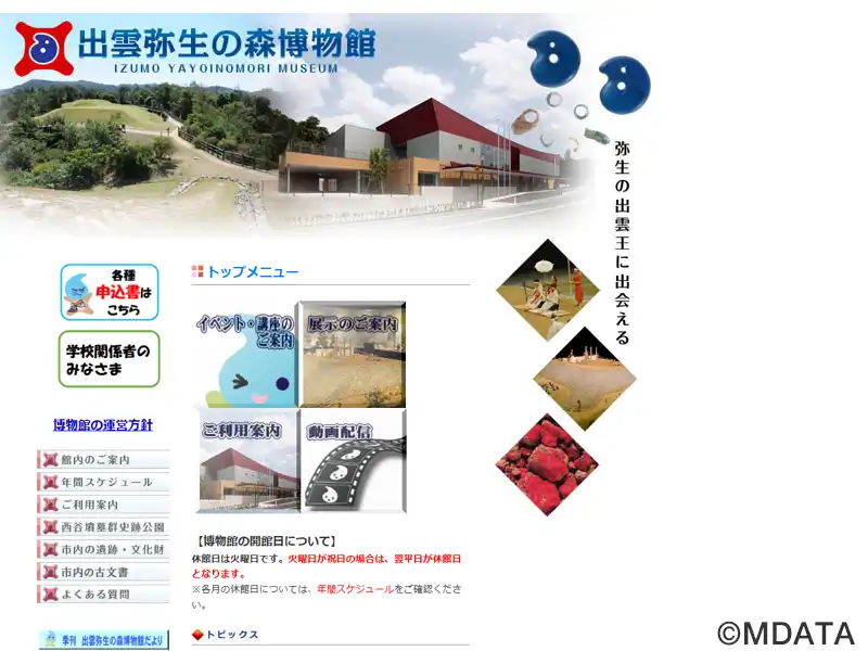 島根県出雲市の西谷墳墓群史跡公園に隣接する考古博物館。西谷墳墓群のガイダンス施設と、埋蔵文化センターの機能を持つ施設として2021年に開館した。常設展示では、王墓・西谷3号墓の出土品や巨大ジオラマ、2号墓の朱、ガラス勾玉や腕輪などの副葬品が展示され、出雲の弥生文化を紹介。また、企画展のほか、ギャラリー展、速報展として市内遺跡の発掘調査の成果を公開している。勾玉・古代鏡づくりなど体験メニューも用意。