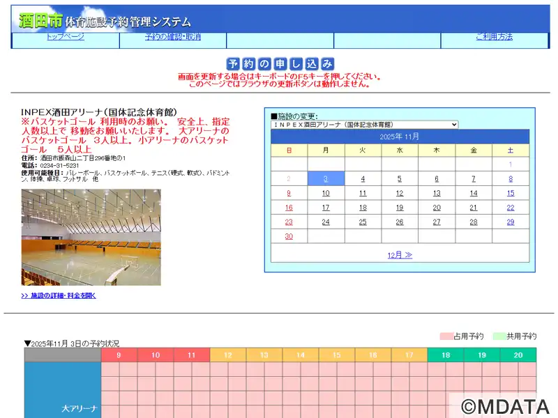山形県酒田市の飯森山公園内にある屋内スポーツ施設。1991年完成、第47回国民体育大会「べにばな国体」ではバレーボール競技会場に使用された。2024年に大規模改修リニューアルし、床材や空調、音響設備など全面改修。観客席を備えた大アリーナと小アリーナはバレーボール、バスケットボール、バドミントン、卓球など各種競技に対応し、SVリーグ・アランマーレ山形の公式戦が開催される。弓道場、研修室も備えている。