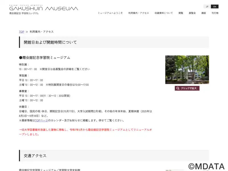 | 住所 | 豊島区目白1丁目5-1 学習院大学目白キャンパス |