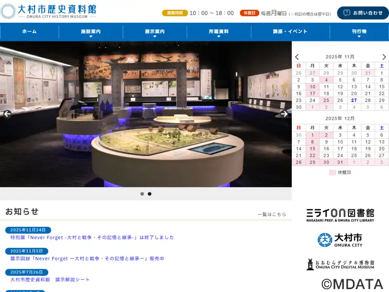 長崎県大村市の地域歴史博物館。大村市立史料館を前身とし、ミライon 図書館に併設して2019年に開館した。旧大村藩領に関する約2万6千点の歴史資料を収集・保存し、原始・古代から現代までの歩みを約200点の実物資料、模型や映像を交えて紹介している。中でも、弥生時代の富の原遺跡ジオラマ、三城城下を再現したマルチタッチモニター、キリシタン遺物のメダリオン「無原罪の聖母」や幕末維新期の書状などが見どころ。