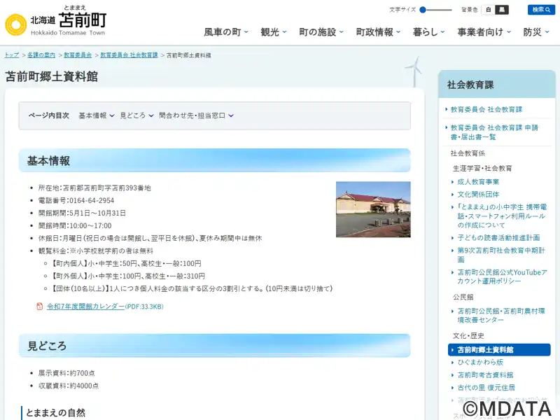 | 定休日 | 月曜日(祝日の場合は翌平日を休館)、夏休み期間中は無休 冬季閉館(11月1日~4月30日) |