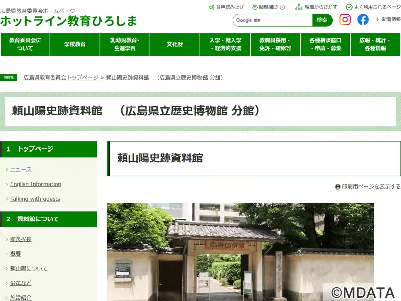 広島市にある、江戸時代後期の文人・頼山陽および頼家ゆかりの資料を展示する博物館。旧日本銀行広島支店の東隣、かつて頼家の屋敷があった地に建つ。脱藩騒動による幽閉の際に「日本外史」を執筆した居室は被曝によって焼失したが1958年に県により復原され、国史跡に指定。展示室、茶室、庭園のほか、被爆樹木のクロガネモチと、被爆遺構の門や石畳が保存されている。「広島頼家関係資料」は国の重要文化財に指定されている。