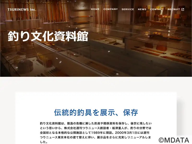 東京都新宿区愛住町にある週刊つりニュース東京本社の1階に、1989年に開設された国内初の釣り専門資料館。創刊者の船津重人が、散逸の危機にあった伝統的釣具や関連資料の保存と継承を目的に設立した。館内には和竿や竹製魚籠、古いリール、釣具関連の書籍や資料など約千点を展示し、竿の素材や技法、仕掛けの変遷を通じて時代ごとの釣り文化をたどる。また、併設書店と連携して釣りや魚文化に関する書籍展示も行われている。