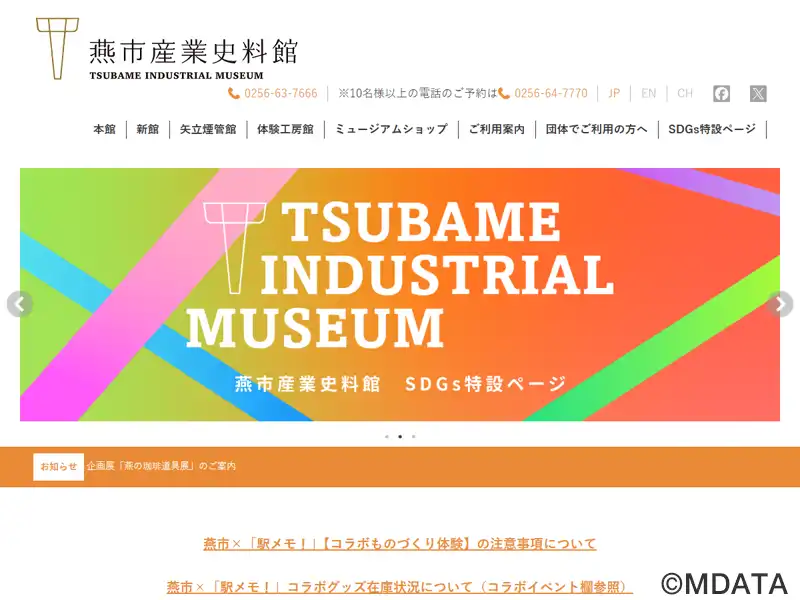 新潟県燕地域で江戸時代から続く金属産業の歴史を軸に、地域に根付いた技と職人文化を紹介する産業博物館。燕に伝わる鎚起銅器と伝統的金属工芸技術について、作業現場の復元展示や映像を用いてわかりやすく紹介し、人間国宝作品などの銘品も展示する。また、江戸から明治期の矢立・煙管コレクション、日本の金属洋食器、世界各地のスプーン約五千点なども収蔵展示され、体験工房館では鎚目入れなど様々なモノづくり体験ができる。