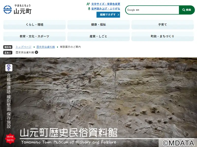 宮城県山元町の縄文時代から現代までの歴史、民俗、自然に関する資料を公開する地域博物館。展示の中心は、町内の合戦原遺跡の横穴墓から出土した飛鳥時代の「線刻壁画」で、鳥や人、家などの図柄が刻まれた東北でも例のない貴重なものとして知られる。震災後の発掘調査を経て壁画が移設され、実物を間近で見学できる。また、江戸時代の大條家文書、赤痢菌発見者・志賀潔関連資料、植物・昆虫標本、復元古民家なども展示している。