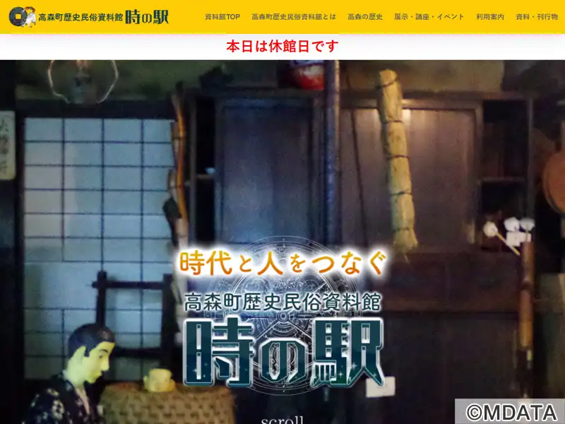 長野県高森町の歴史や郷土の文化を学び、継承する生涯学習の拠点として1979年に開館した資料館。新館では、国内最古の鋳造貨幣とされる富本銭をはじめ、吉田本城出土の両面顔面取手、山吹藩ゆかりの国学資料を展示。本館1Fでは、昭和の農家の居間を再現し、生活道具を通して地域の民俗文化を紹介。2Fでは縄文時代から近世に至る高森地方の歴史を遺跡出土品を中心に通史的に展示する。特産品の市田柿についての展示も特徴。
