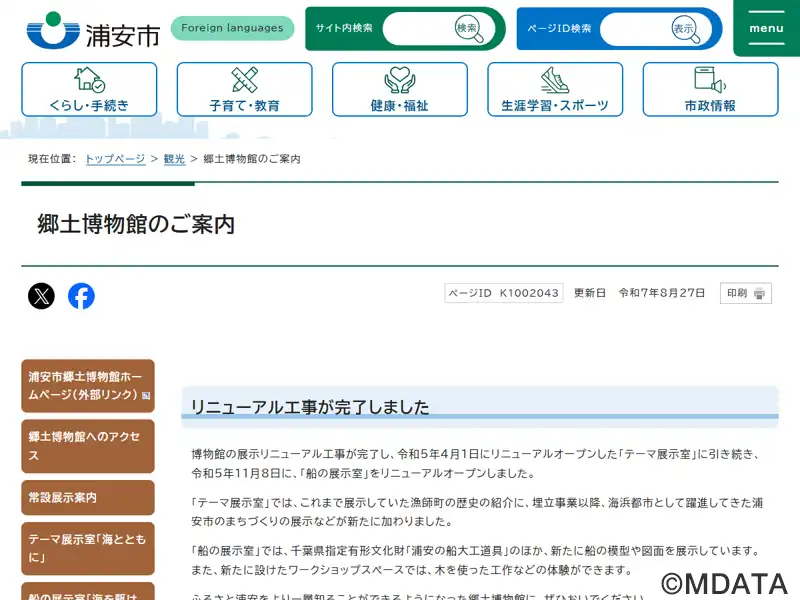 漁師町時代の浦安の歴史と生活文化を伝える体験型の郷土博物館として2001年開館。「テーマ展示室」では、かつての漁師町から海面埋立を経て海浜都市になるまでの歩みを、民具や文書史料、ジオラマ、大型映像などで紹介する。「船の展示室」では県指定有形文化財「浦安の船大工道具」のほか、船の模型や図面を展示する。昭和27年頃の漁師町の情景を再現した屋外展示場「浦安のまち」ではべか舟の乗船や昔の遊びが体験できる。