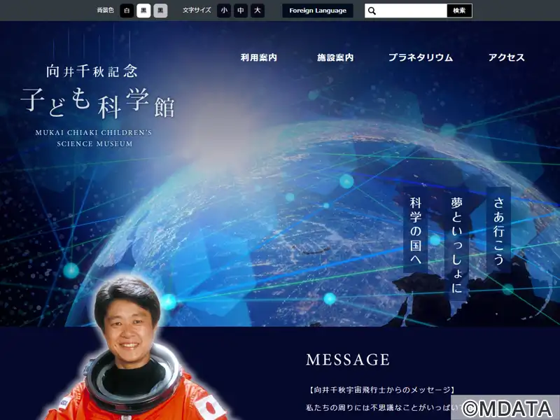 群馬県館林市出身で日本人初の女性宇宙飛行士・向井千秋を顕彰し、科学への関心を高める目的で、1991年に設立された科学館。直径23メートルのプラネタリウムで臨場感あふれる宇宙空間を再現。月の重力を疑似体験できる装置や、実寸大で再現されたスペースシャトル船内など、宇宙に関する展示が充実。科学原理を学べる実験装置、拡大ジオラマ、手製飛行機などが展示されているほか、屈折望遠鏡を有する天体観測室も完備する。