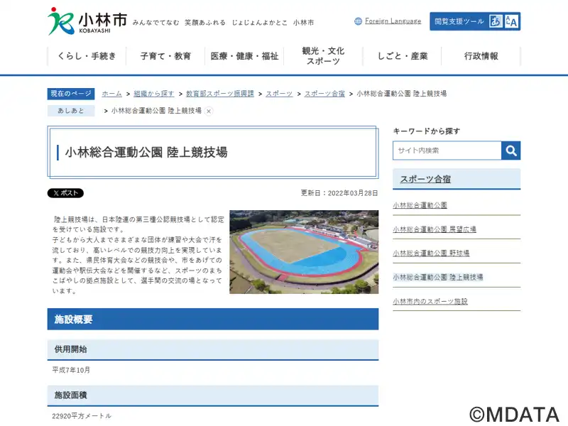 小林総合運動公園市営陸上競技場(正式名) |
