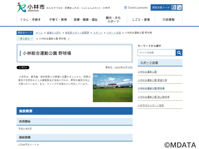 小林総合運動公園野球場(正式名) |