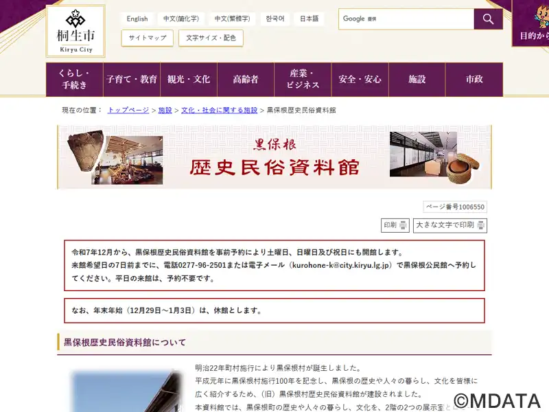 | 住所 | 桐生市黒保根町水沼乙175 |