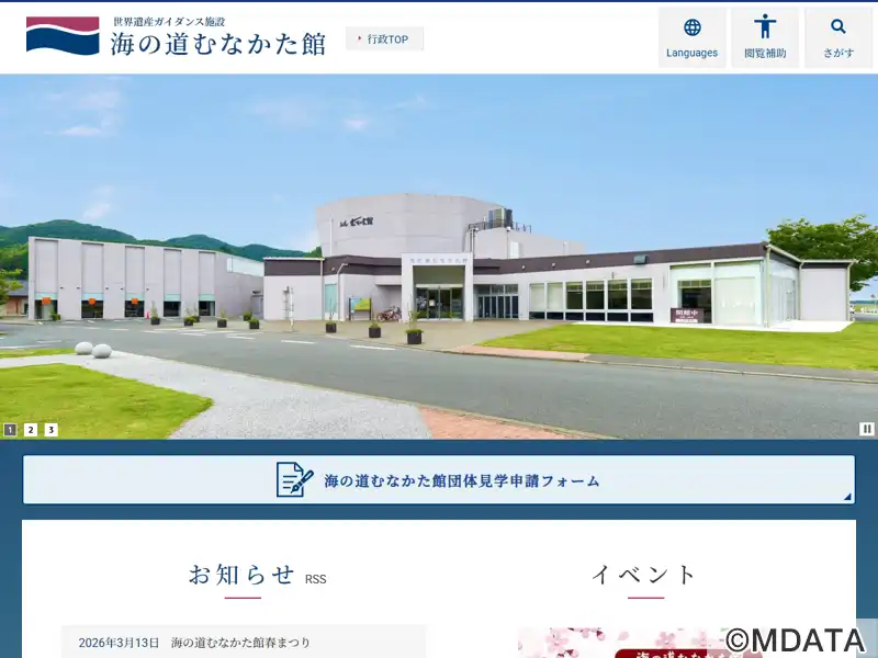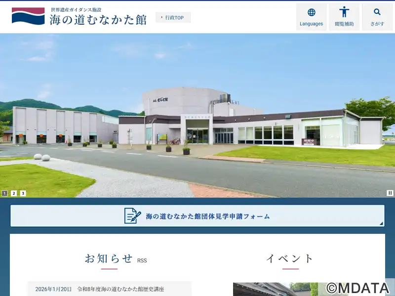 福岡県宗像市にある、世界文化遺産「『神宿る島』宗像・沖ノ島と関連遺産群」と、郷土の歴史を紹介する地域博物館。構成資産のジオラマや国宝のレプリカなどを展示し、沖ノ島の臨場感あふれる大型映像とVRで、世界遺産の魅力を体感できる。また、常設展示は「海の道」をテーマに、先史時代から近世までの遺跡出土品や資料を時代順に展示し、海を介した人と文化の交流の歴史を紹介。宗像の船や造船技術に関する展示も行っている。