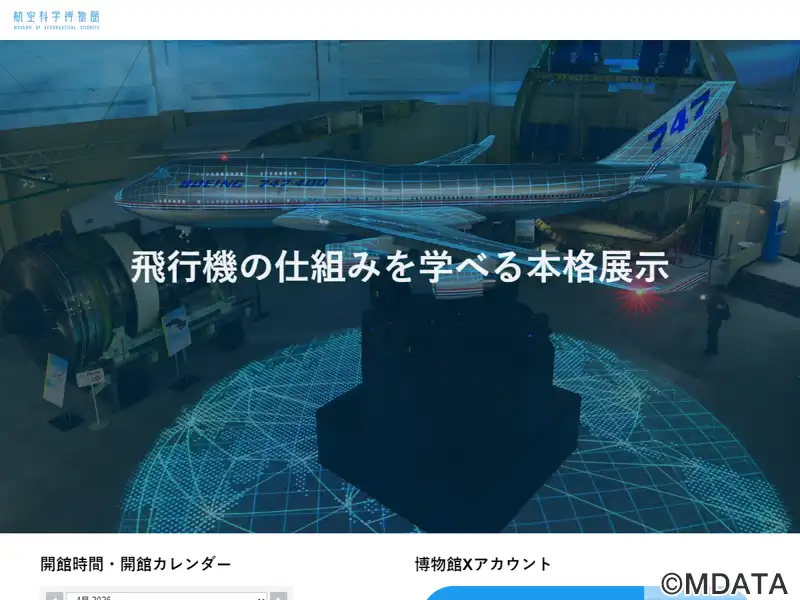 成田空港に隣接する航空専門の体験型博物館。航空知識の啓発と技術振興を目的に1989年に開館した。屋外展示場には約20機の実機が並び、一部は内部も見学可能。館内では、実物のエンジンやコックピットなどの展示を通じて航空機の構造を詳しく学ぶことができる。また、ボーイング747の大型模型操縦や、本格的なフライトシミュレーターなど各種体験プログラムが充実。展望エリアからは飛行機の離着陸を間近に観覧できる。
