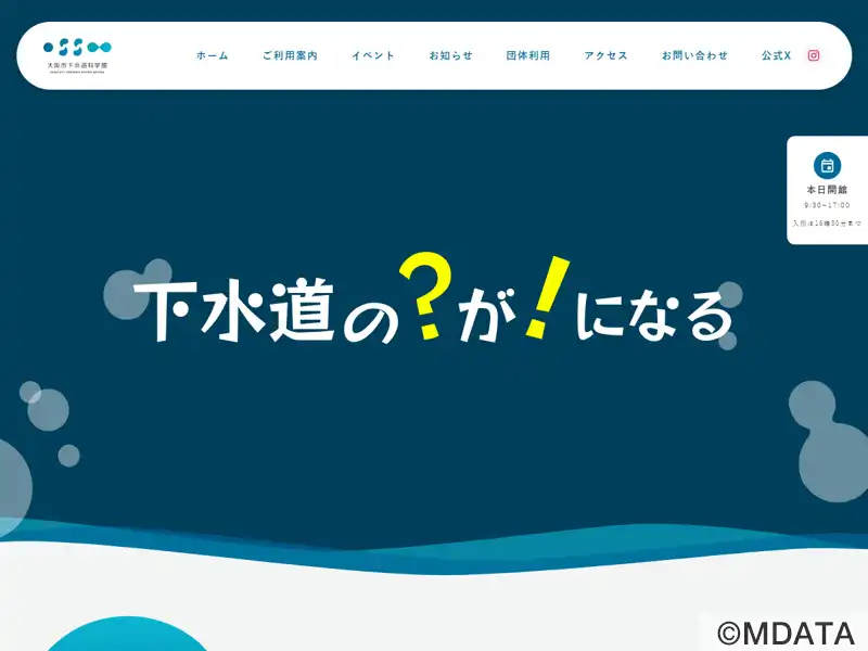 大阪市此花区にある下水道事業に関する体験型学習施設。身近なライフラインである下水道事業の理解促進を目的に1995年に開館、2022年には「学習・研修」に加え、大阪市下水道の「海外展開」と「技術開発」の3つの機能を併せ持つ施設としてニューアルした。常設展示では、映像技術や体感型ゲームを取り入れ、くらしと下水道のかかわり、水をキレイにするしくみ、下水道のこれからや水環境について楽しく学ぶことができる。