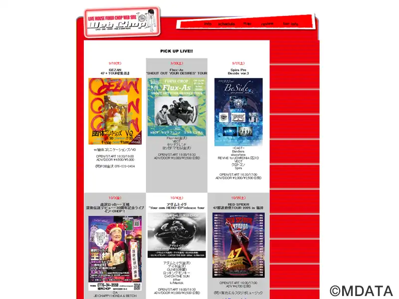 福井市花堂東にある、キャパ250人のライブハウス。1983年に武生市でカフェバーとして創業、1994年に現住所に移転。倉庫を改装してリニューアルオープンした。店内は天井が高く、ビリヤードも楽しめる、おしゃれ空間。と思いきや、カウンターサイドと、奥のステージサイドが金網と柱で仕切られ、CHOP特有の熱いライブ風景を演出。盛り上がりを加速する。もちろん、アコースティックなどもオールジャンルで楽しめる。