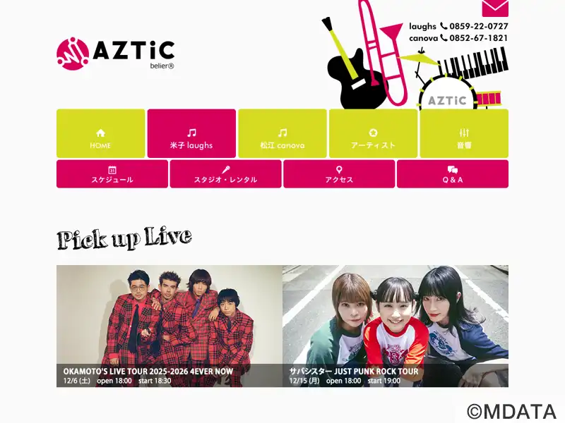 山陰の音楽シーンをリードするAZTiCの1号店、1999年5月に「米子ベリエ」として開店、2006年に現住所に移転したのち、2010年に現在の店名となる。通称、米子ラフズ。米子の街から、メジャーやインディーズを問わず、ワクワクする音楽を発信している。半地下ロビーライブ・CD視聴コーナーも設置。また、Aスタジオ、Bスタジオ、レコスタジオの3つの音楽スタジオが併設されており、PA付きのホール練習も可能。