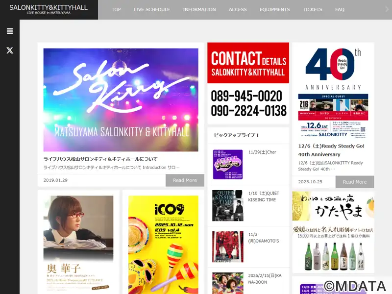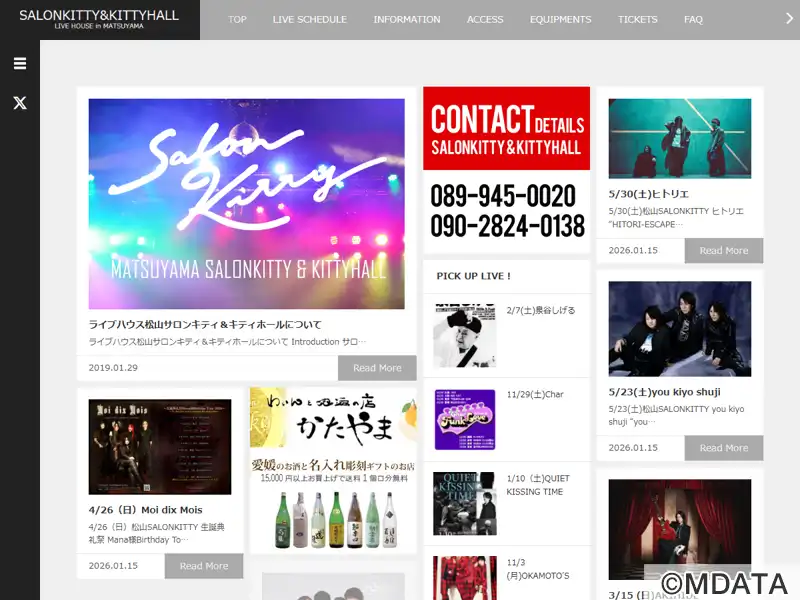 松山市河原町のキティビル内にある2つのイベント施設。1F「松山サロンキティ」は、1994年開業の、最大400人収容可能なライブハウスで、ロック、ヴィジュアル系、アイドルなどのイベントが開催されている。ロッカーや手荷物の預かりもあり、快適なイベント空間を提供している。また、5Fの「松山キティホール」は、108席の劇場スタイルの多目的ホールで、アコースティック、演劇、お笑いライブなどが開催されている。
