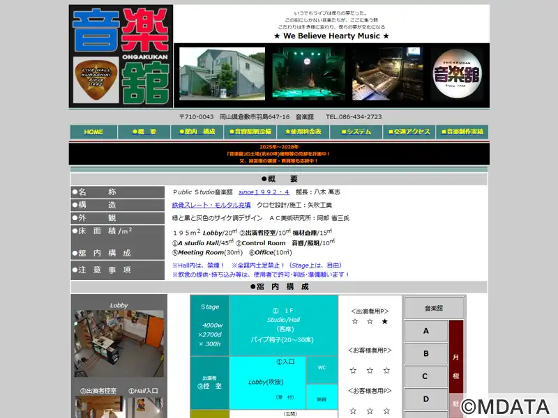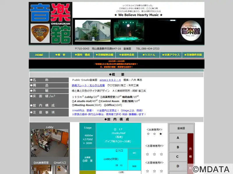 1992年4月、倉敷市にオープンしたスタジオ・ライブホール。館長は八木たかし氏。大きな倉庫のような外観で、サイケ調デザインが特徴。施設内には、天井が高く音の抜けが良いスタジオホール(45平方メートル)に、プロ仕様の機材を揃えている。音響・照明コントロールルームやミーティングルームなどを備えている。プロからアマチュアまで、あらゆるジャンルのライブ、レコーディングやリハーサルに利用可能。