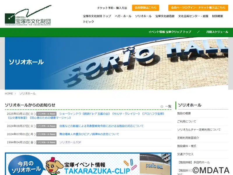 阪急宝塚駅ソリオ1の3階にある宝塚市立文化施設。市民の芸術・文化の振興、育成、向上を目的に1993年に開館した。ブルーを基調としたホール内装は、フランスの建築家ボージャンスキー氏によるカラーコーディネートの「ソリオカラー」で彩られ、ミュージカル、演劇、ライブ、コンサート、映画会、能や狂言、落語など、幅広いジャンルのイベントに対応している。7つの会議室もあり、多様なサークルや教室に利用されている。