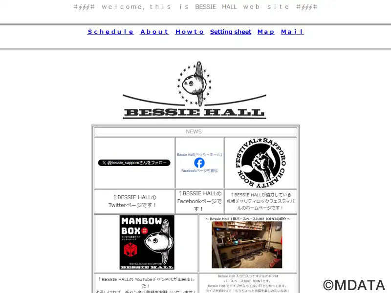 すすきの駅(2番出口)近く、晴ればれビル地下1階にあるライブハウス「ベッシーホール」。オールスタンディング約250人。1986年オープン以来、地元で活動するミュージシャンから全国区で注目を集めるバンドのライブツアーまで、数多くのアーティストが出演する札幌の老舗ライブハウス。いい音・きれいな照明・あったかいSTAFFを目指しており、ブッキングはもちろん企画ライブやパーティー等ホールレンタルも受付中。
