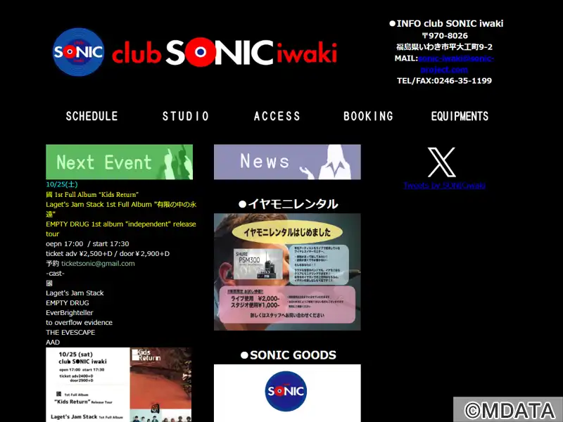 福島県いわき市に、2000年にオープンしたライブハウス。フロアの天井高さ5m、ステージの高さ80cmでキャパシティ約280人。パンク・ラウド系からアコースティック弾き語り、地元バンドからツアーミュージシャンまで、県内外を問わず幅広く出演する。地元の音楽拠点として、多様なアプローチで地域に根ざしたイベントを展開、インディーズ魂が光る。また、バンド練習スタジオが併設され、リハーサル録音も可能。