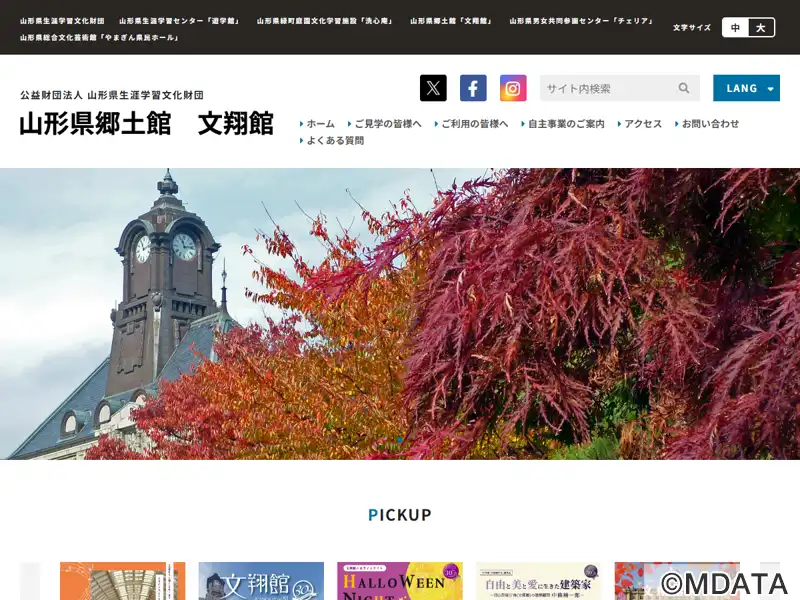 大正5年に旧山形県庁舎・県会議事堂として建てられた、英国ルネサンス様式の建築物で国の重要文化財に指定されている。郷土の理解を深め、山形県の文化振興を目的に、1995年10月に博物館として一般開館した。アーチ状のヴォールト天井や柱を復元した「議場ホール」では、室内楽コンサートや演奏会、発表会などが行われる。威風堂々たる外観と優美な意匠、過去・現在・未来をきざむ「時計塔」、時代を越えた美しさに息をのむ。